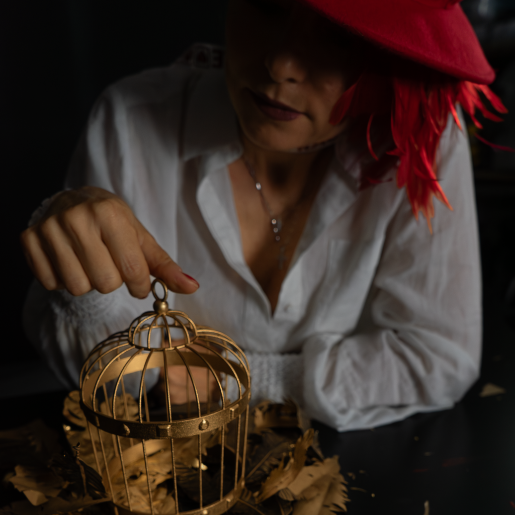 Collages tridimensionnels suspendus comme la vie de ceux qui se remettent dans le jeu en transformant la cage en couronne !